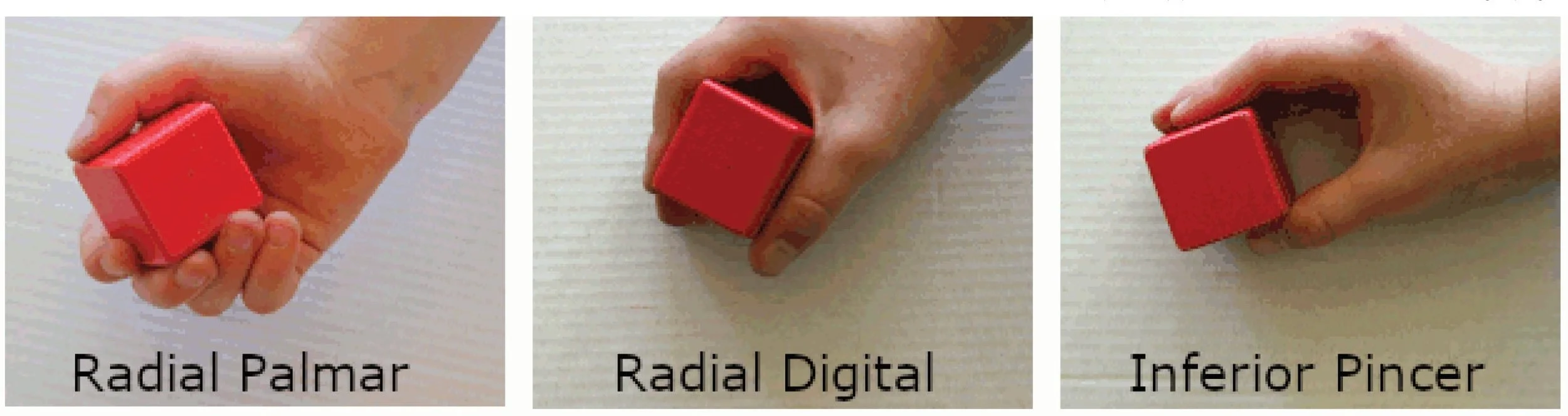4-6 Months: Ulnar palmar grasp, palmar grasp, and radial palmar grasp. All build the full-hand grasp, beginning with a few fingers and eventually using the thumb to hold an object.